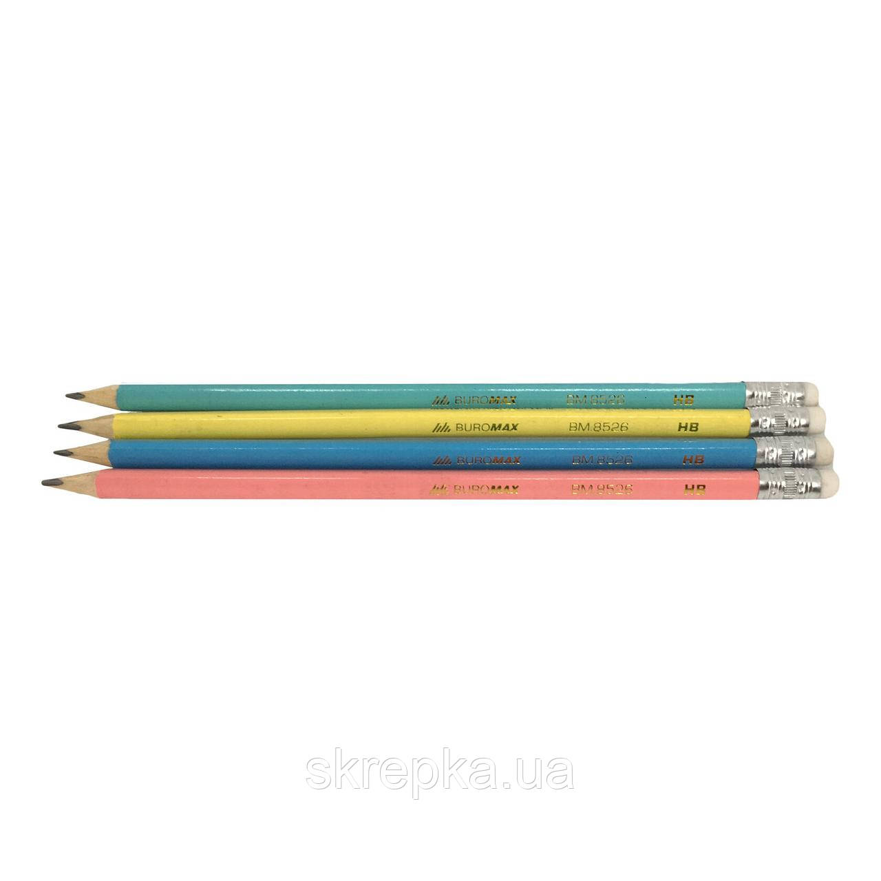 Олівець графітовий Вuromax 8526 HB асорті з гумкою